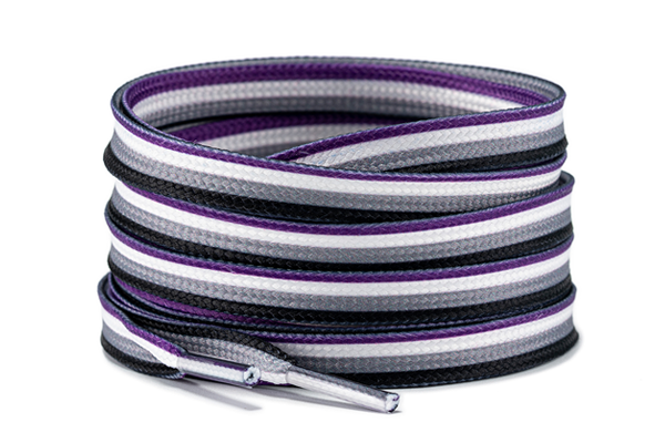 Our shoelaces are a great way to show your support and pride for the LGBTQ+ community. These vibrant laces feature the colours of the asexual flag, making them a great choice for representing the queer community or for expressing your own identity. Shoelaces are a fun and easy way to add a colourful pop of pride to any pair of shoes, so get yourself a pair of our Asexual Shoelaces and start showing your support for the LGBTQ+ community today.