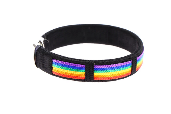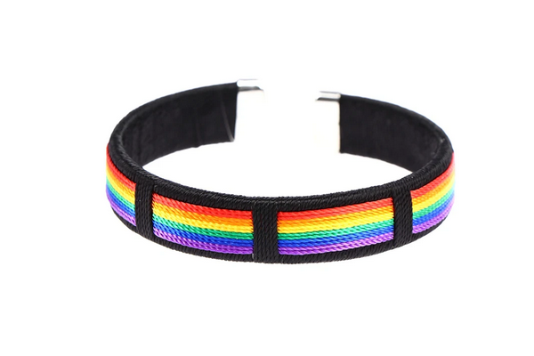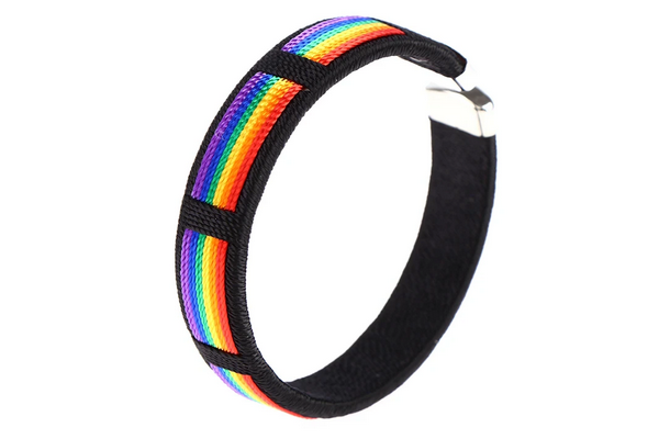 Our Woven Rainbow Bracelet is the perfect accessory for making a statement of pride. The vibrant colours of the rainbow that are featured on this black bracelet are sure to add a pop of pride to any look. Not only is this bracelet stylish, it is also lightweight and comfortable to wear making it a great accessory for everyday wear.